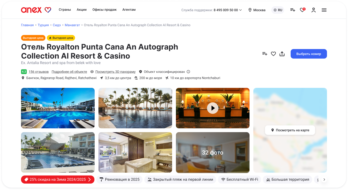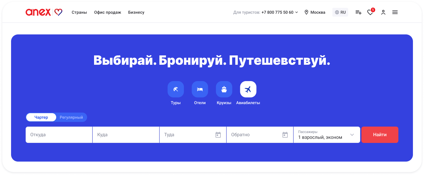 В результате сайт Anex Tour обрёл современный визуальный язык, стал понятнее, живее и ближе к пользователю. Мы начали выстраивать единую систему визуальных решений, которая повышает доверие, улучшает восприятие бренда и помогает выделяться среди конкурентов.