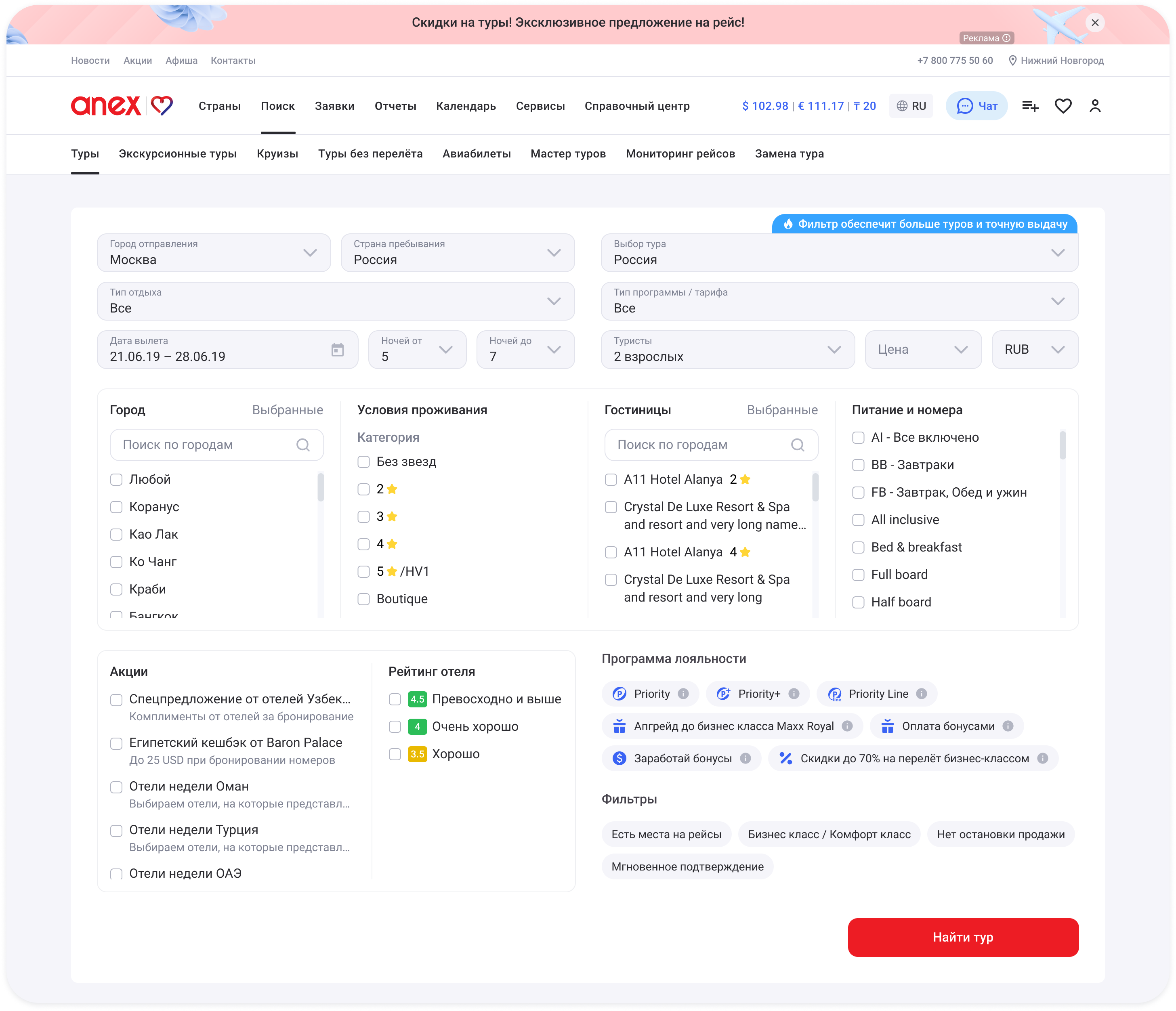 Также обновил кабинет агентов: фильтры и карточки туров стали более функциональными и современными.