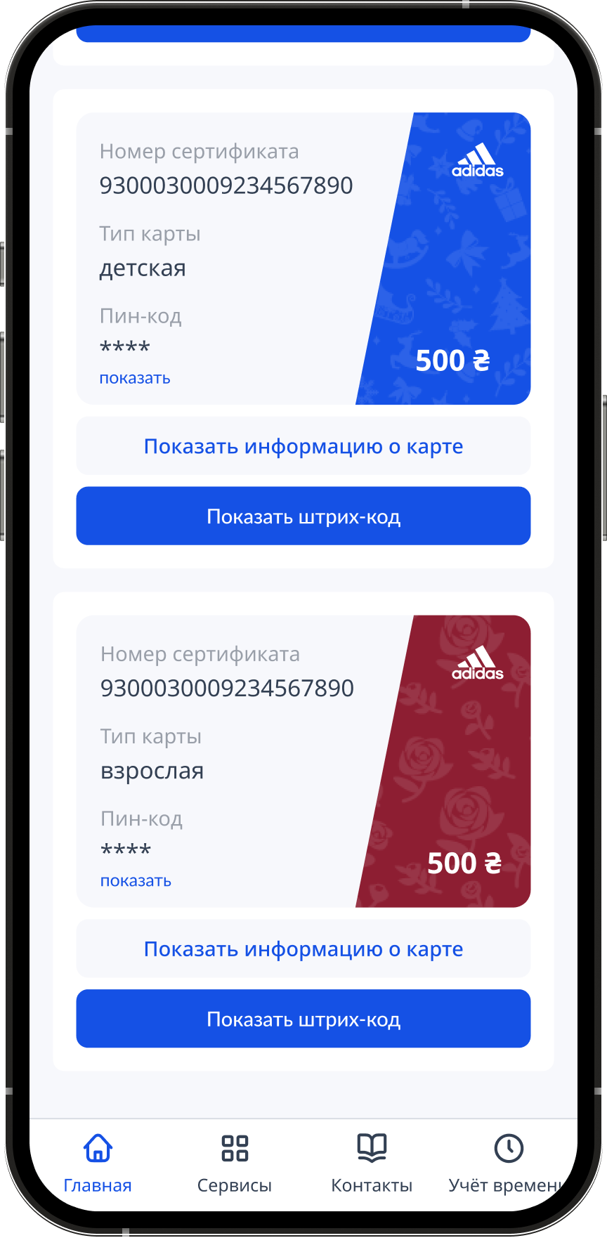 Витрина подарочных карт