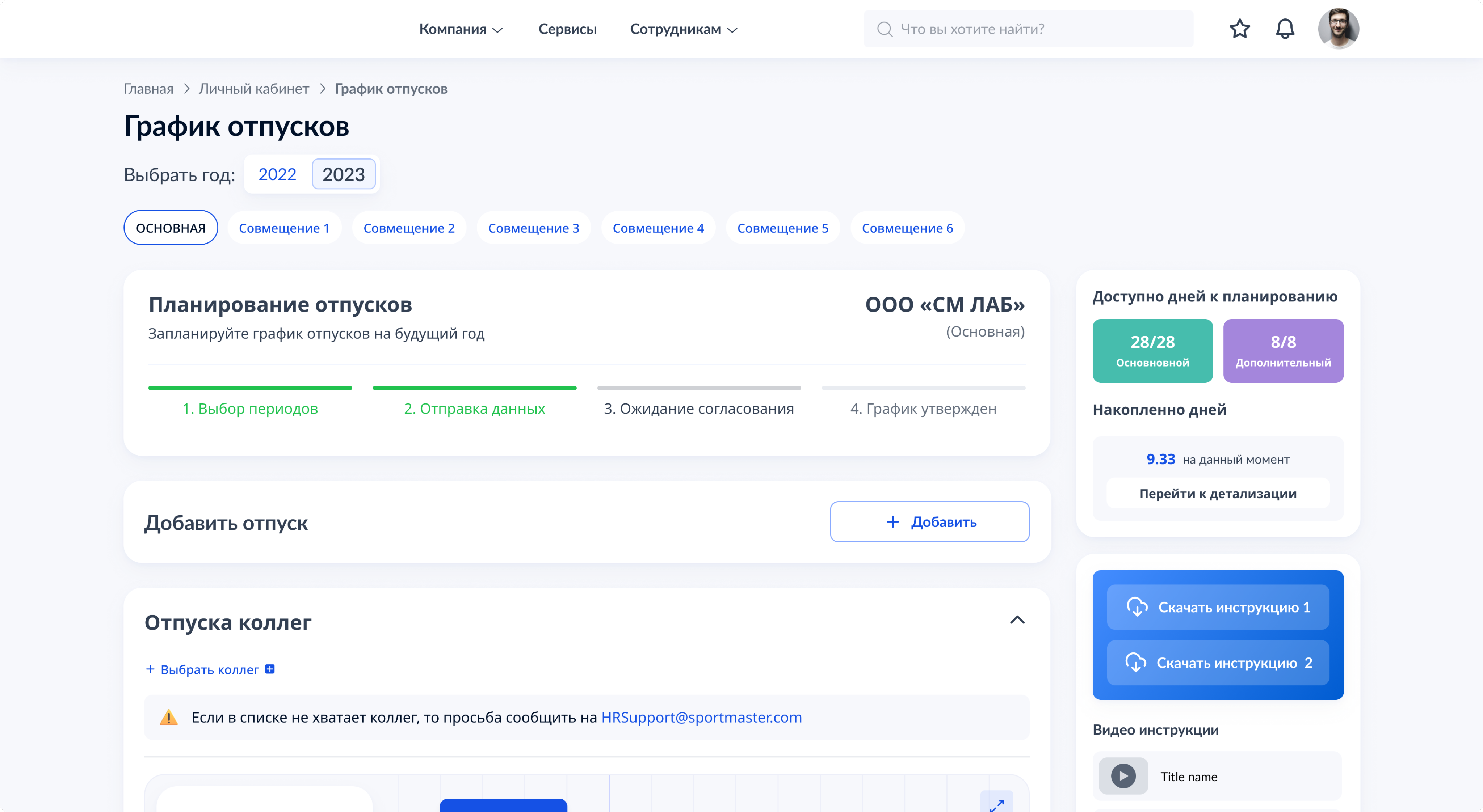 — Сотрудник выбирает примерные даты отпуска