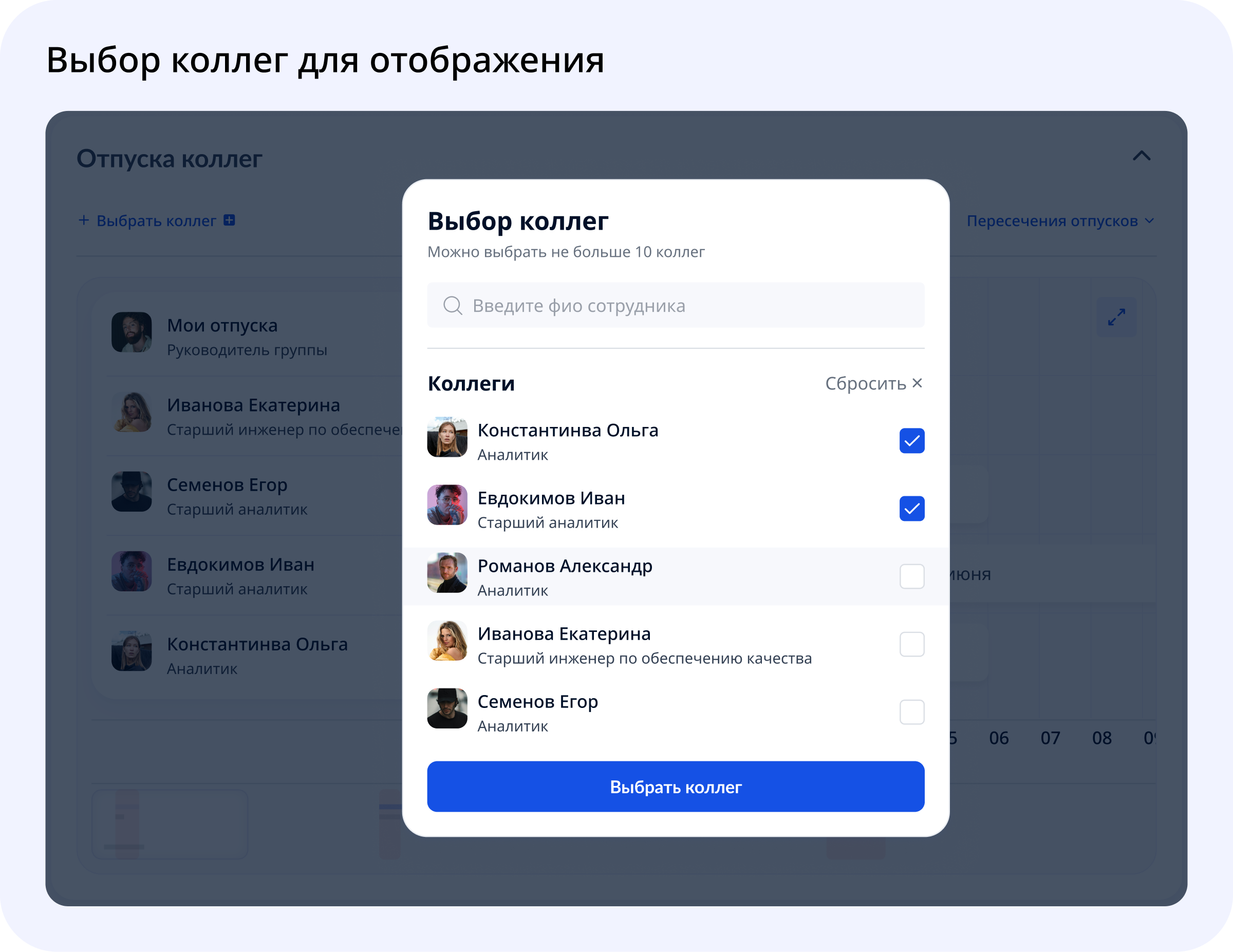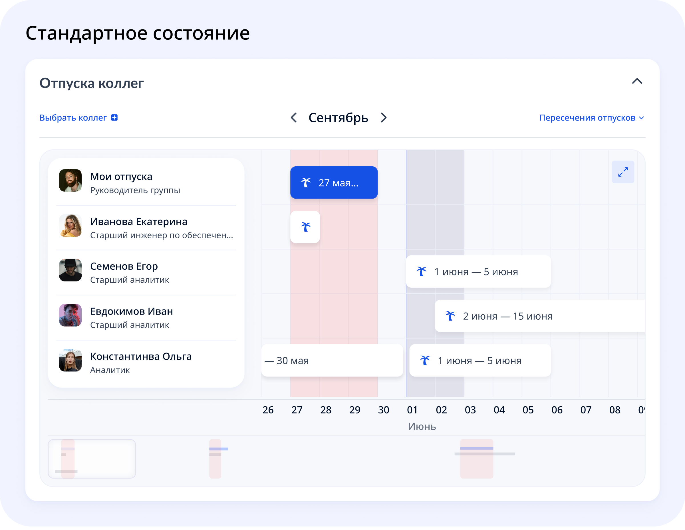 Самая важная часть решения — это не просто просмотр отпусков, а возможность быстро понять конфликты.